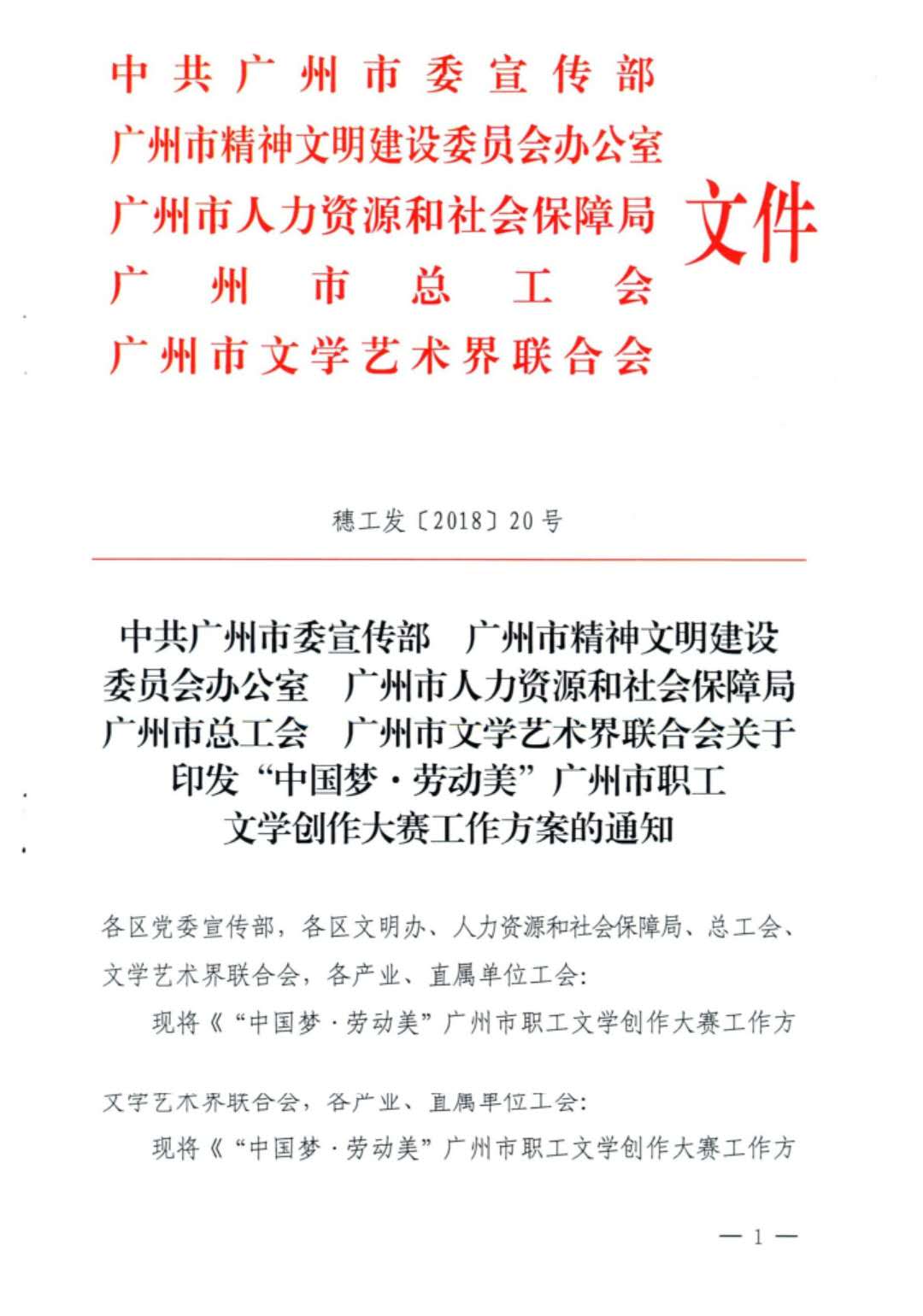 委員會(huì)辦公室 廣州市人力資源和社會(huì)保障局 廣州市總工會(huì) 廣州市文學(xué)藝術(shù)界聯(lián)合會(huì)關(guān)于印發(fā)“中國夢·勞動(dòng)美”廣州市職工