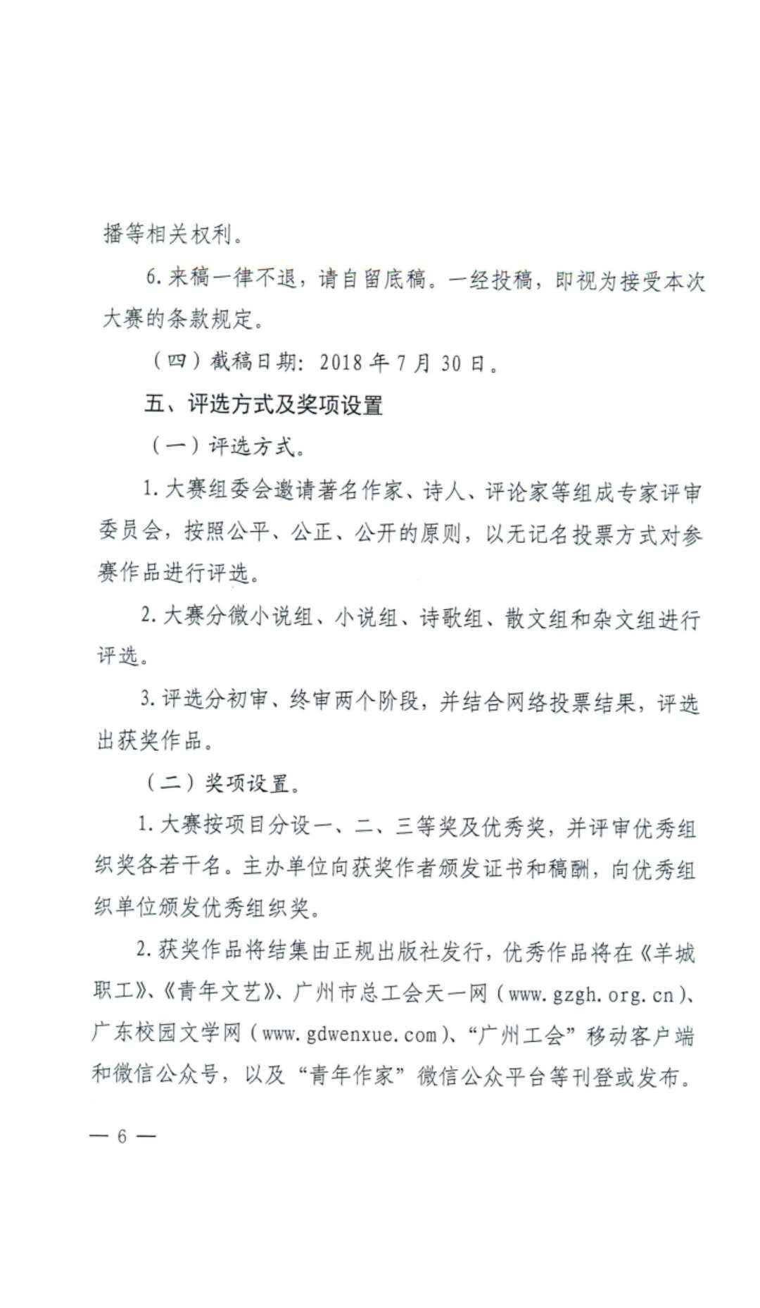 6.來稿一律不退,請自留底稿。一經(jīng)投稿,即視為接受本次大賽的條款規(guī)定。
