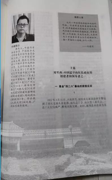 這是一部對(duì)黨史研究極具參考價(jià)值的作品。劉琴西是紫金“四二六”暴動(dòng)總指揮,是中國(guó)最早紅色政權(quán)的創(chuàng)建者和領(lǐng)導(dǎo)者之一。紫金“四二六”暴動(dòng)是中共黨史上濃墨重彩的一章,打響共產(chǎn)黨領(lǐng)導(dǎo)的武裝反抗蔣介石的槍聲;建立了由共產(chǎn)黨領(lǐng)導(dǎo)的人民政府;建立了第一支由共產(chǎn)黨的人民軍隊(duì)——紫金縣工農(nóng)革命軍;在全國(guó)實(shí)行紅色武裝割據(jù),建立農(nóng)村革命根據(jù)地。可以說,劉琴西的思想與實(shí)踐與中國(guó)革命“槍桿子里出政權(quán)”“農(nóng)村包圍城市”等理論思想是高度吻合的。劉爾崧,1921年春加入中國(guó)共產(chǎn)黨,是我黨建黨初期最早一批的五十幾名黨員之一,先后組建了廣東社會(huì)主義青年團(tuán)、中國(guó)共產(chǎn)主義青年團(tuán)、新學(xué)生社,創(chuàng)辦愛群通訊社,改組廣東油業(yè)工會(huì),領(lǐng)導(dǎo)順德工人罷工、沙面工人罷工、省港大罷工,親歷沙基慘案等,書寫了中國(guó)工人運(yùn)動(dòng)的紅色傳奇,在實(shí)踐中為中國(guó)革命指明了一條工人革命的道路,為以后在白區(qū)工作的黨員們有了參考借鑒作用。友義寫這部作品,除了參照文獻(xiàn),更多地利用家鄉(xiāng)人的優(yōu)勢(shì)到實(shí)地采訪,尤其是對(duì)尚健在的相關(guān)當(dāng)事人以及劉琴西的兒子劉乃超老人的采訪,事實(shí)跟文獻(xiàn)相互印證,對(duì)文獻(xiàn)缺失部分作出有力的補(bǔ)充。