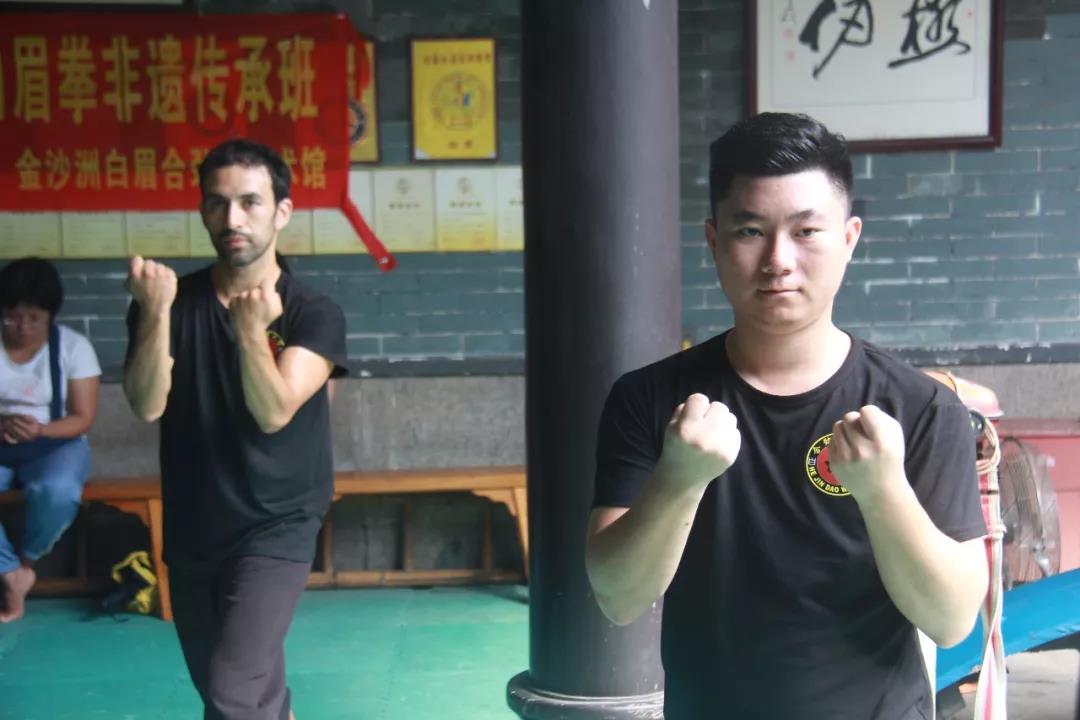 在這次的學(xué)員隊(duì)伍中,與以往不同的是有一張面孔與周邊學(xué)員不同,他便是來自墨西哥的Hugo。據(jù)了解,Hugo在參與此次暑期白眉拳非遺傳承班前已在少林寺學(xué)習(xí)武術(shù)三年,聽聞白云區(qū)文化館與白云區(qū)非物質(zhì)文化遺產(chǎn)保護(hù)中心聯(lián)合主辦的此次活動(dòng),熱愛武術(shù)的他便毅然決然的報(bào)名參加,專程從河南乘飛機(jī)趕來學(xué)習(xí)。在課堂上,他目光緊跟師傅的身姿,手腳也隨著師傅的身法耍起招式,每一次的出招的勁道表現(xiàn)了他對(duì)中華武術(shù)的熱誠。在此次課程中,他體驗(yàn)了白眉拳的精深技法,也感受到白眉拳的剛毅精神。