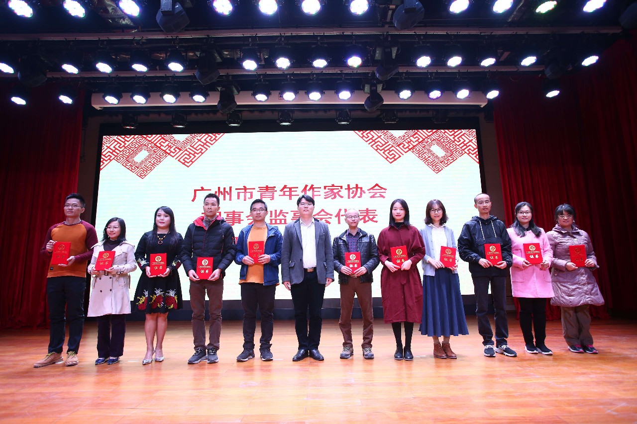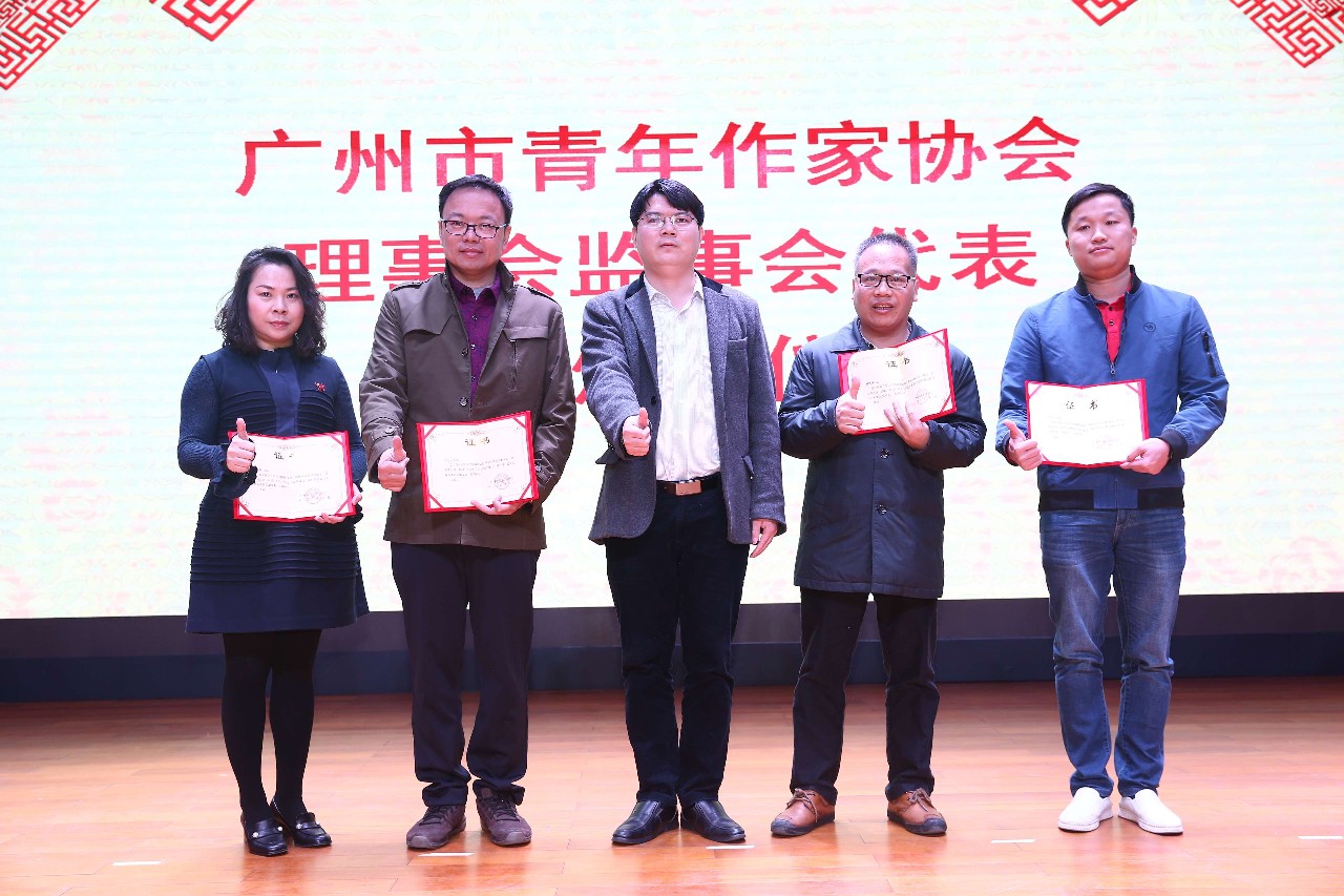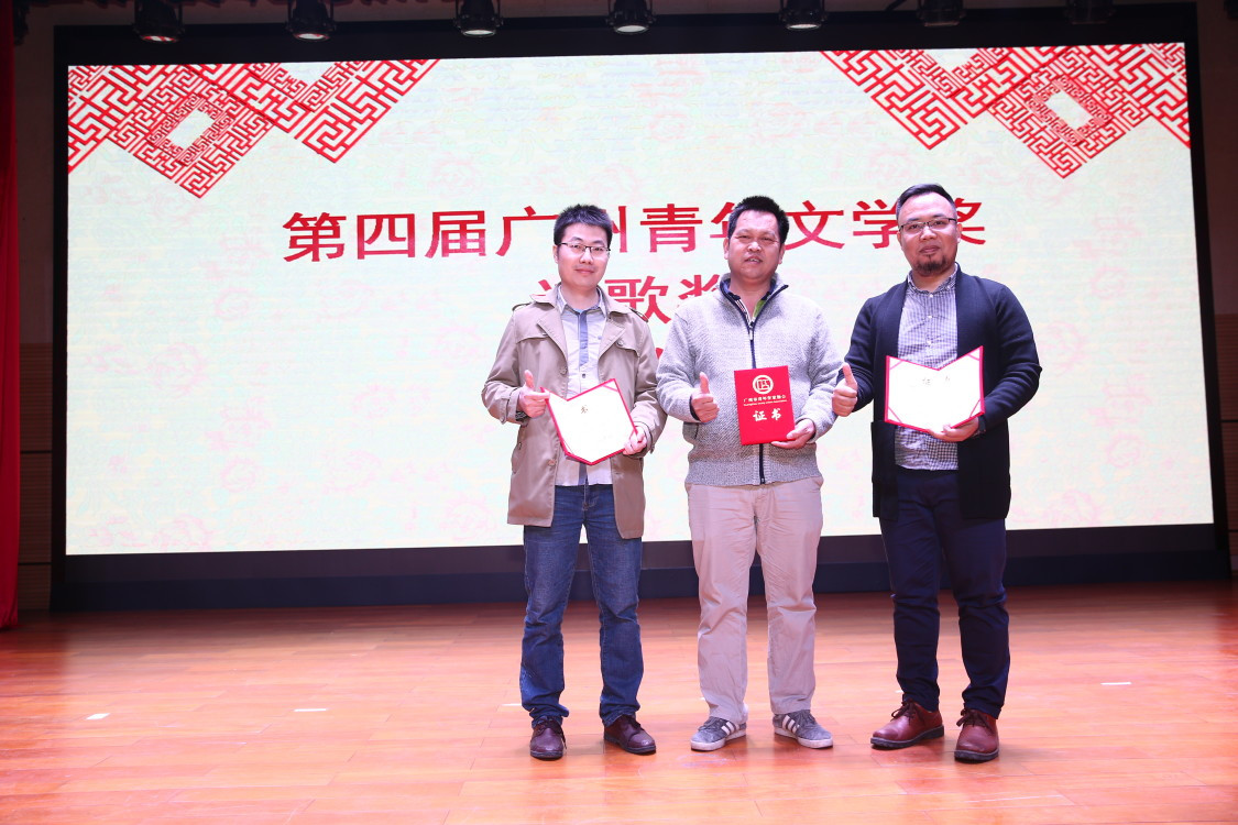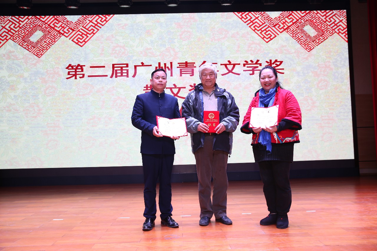 簽售會旁邊,詹海林、黃銀秋、馬健忠、童勝利、孫可、羅燕媚、郭英珊、楊小紅、曾敏、陸凌、關婉玲、周健明、戴彩云等老中青三代13名書畫家現場潑墨揮毫,創作了一幅幅精美的字畫作品,免費贈送,文藝惠民,受到不少書畫收藏者和大量市民的追捧。場外交流的氣氛熱火朝天,與此同時,在圖書館報告廳舉辦的場內頒獎典禮也在有序進行。本屆文學盛會的重頭獎——由廣州市青年作家協會、廣東校園文學網主辦的“第二屆廣州青年文學獎”現場揭曉。李潔珊、巫宏振榮摘小說獎,王國省、吳朝、黃雅青喜獲散文獎,郭濤、彭海波、盧靜云斬獲詩歌獎。廣州市青年作家協會主席湯炎忠表示:“連續二屆的廣州青年文學獎,是推進廣州文學界新生力量發展的一種探索嘗試,以會員內部評選為主,希望拋磚引玉,借此激發青年作家的創作熱情,擦亮廣州青年文學名片。”