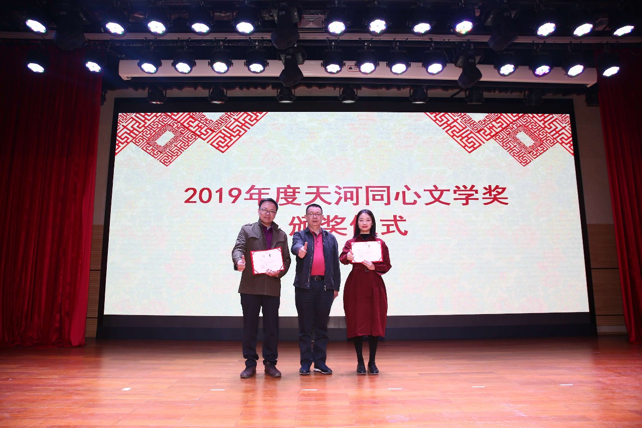 本屆文學節另一重頭戲,則是現場頒發了“2019年度天河同心文學獎”。吳作歆、陳丹純喜摘該項殊榮。作為廣州新城市中心區、高校聚集區、名企薈萃區,天河區是青年逐夢文學、創新創業、綻放青春的理想之地。連續多屆廣州青年文學節獲得天河區和天河區黨外知識分子聯誼會的鼎力支持,彰顯天河區以人為本、可持續發展、共聚共創人才天河的重要理念。