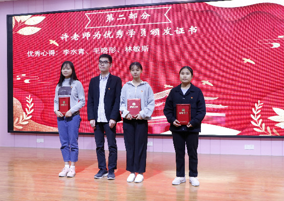 許恩蘭老師上臺為獲得“優秀心得”、“優秀學員”稱號的學員頒獎,激勵他們再接再厲。