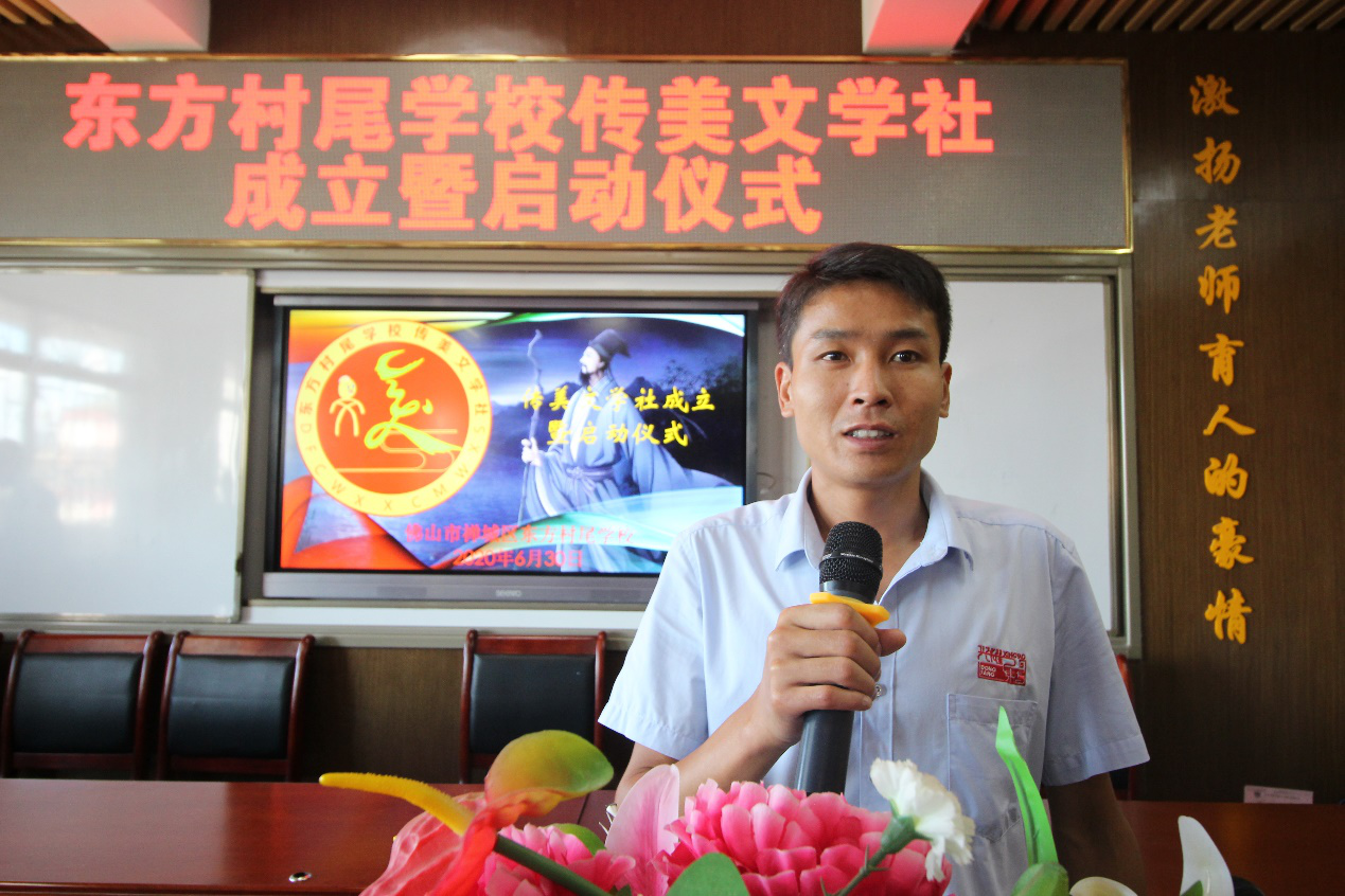 六月荷花香滿湖,紅衣綠扇映清波。為了進一步豐富學生校園文化生活,激發學生廣泛閱讀和學習語文的興趣,提高學生的讀寫能力和文學素養,在全校范圍內營造健康高雅的校園文化氛圍。2020年6月30日上午八點,東方村尾學校于小學部五樓多媒體教室舉行“傳美“文學社成立暨啟動儀式。本次活動由中學文科組組長劉家宏老師主持,黃清平校長、李新偉副校長、羅煒主任,文科組的全體教師及傳美文學社的全體社員參加了本次活動。