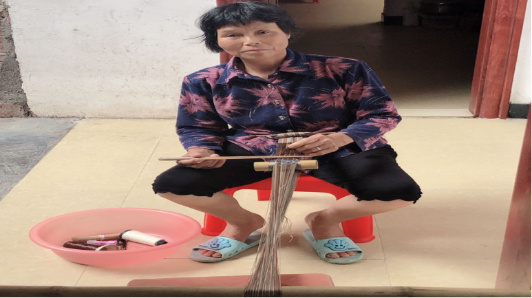 圖為傳承人朱木恩在編織織帶仔。傳承人朱木恩 供圖