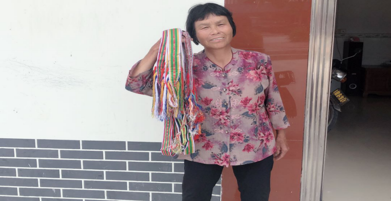 圖為傳承人朱木恩與她編織的織帶仔。傳承人朱木恩 供圖