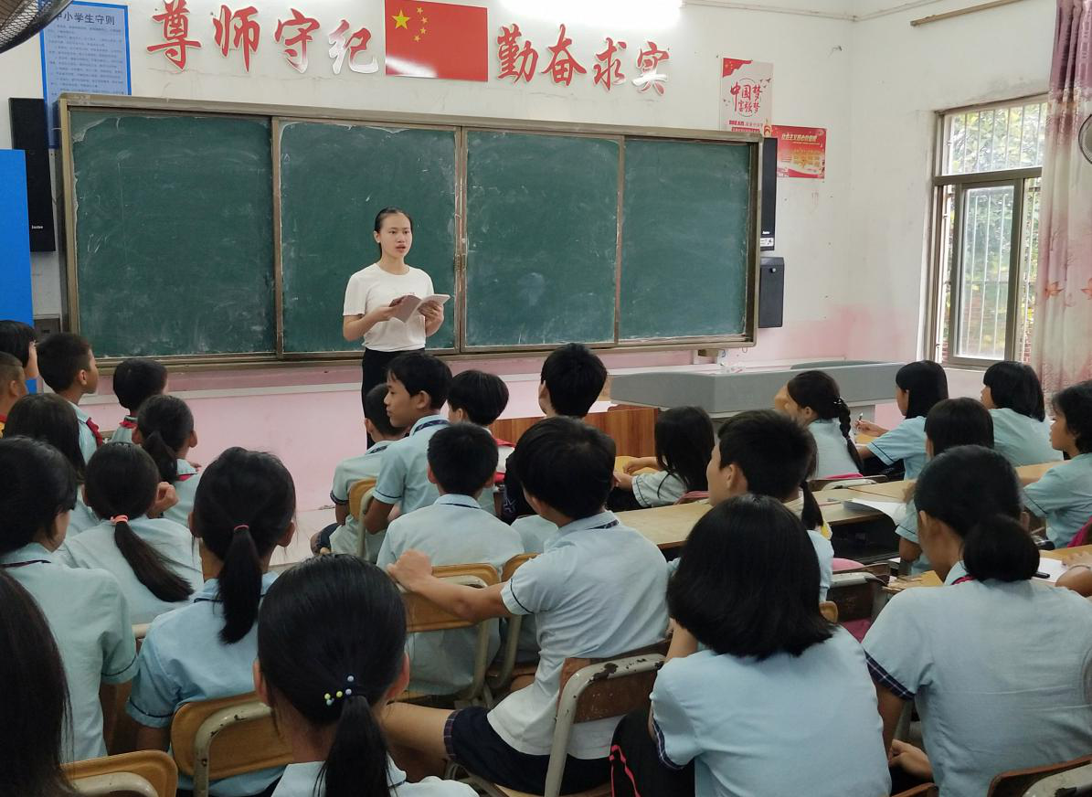 “尊敬的校長、老師,親愛的同學們大家好,我們來自嶺南師范學院的‘幸福紅領巾’社會實踐隊……”伴隨著雷州市楊家鎮陳家小學學生們的熱烈掌聲,“幸福紅領巾”隊長張國琳在開班儀式上發言,8月1日,“幸福紅領巾”社會實踐隊的老師們和學生們相識于雷州市楊家鎮陳家小學,開始了他們為期十天的支教活動。
