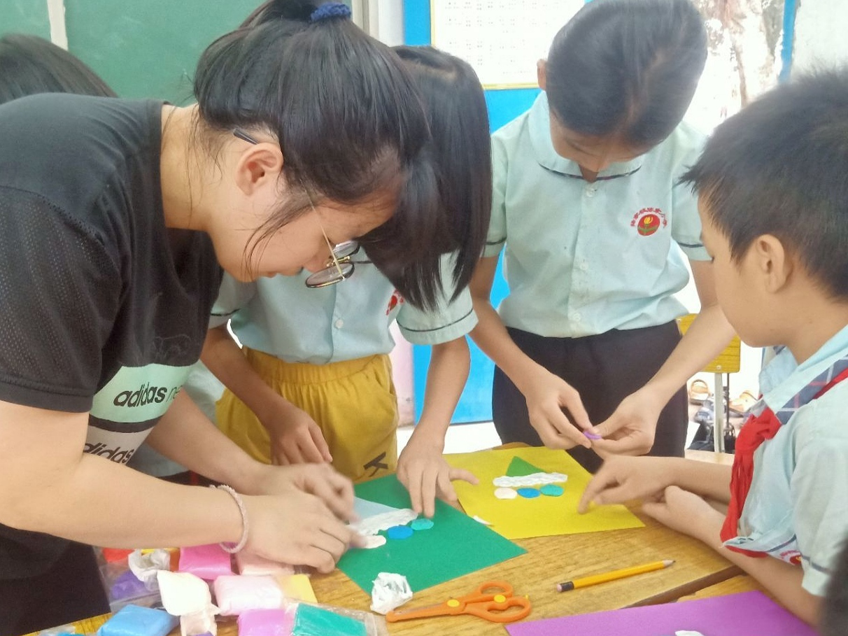 在學生們的手工制作課——超輕粘土制作課上,實踐隊老師使用多媒體進行教學,并采用了邊講解邊示范的教學方法,先教會學生們使用超輕黏土塑造形狀,再教他們如何黏合起來,進行加工。整個教學過程步驟明確,思路清晰,設計合理,貼切學生們的接受能力和課堂習慣,充分調動學生的動手制作積極性和和激發了創造性。