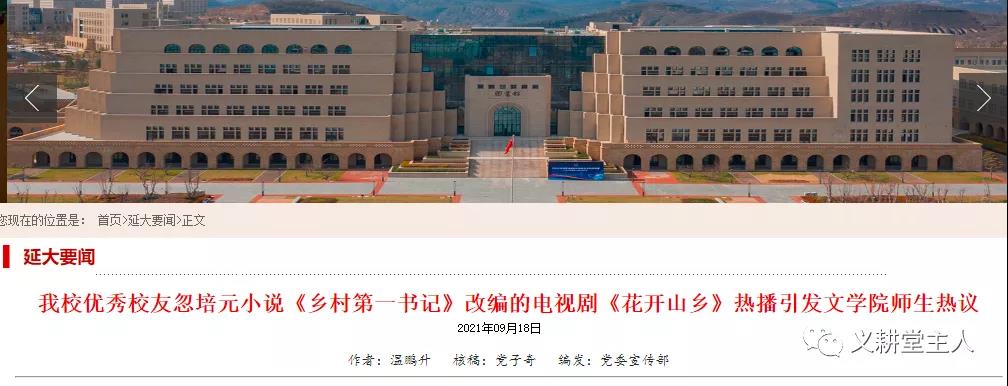 【按語】由長篇小說《鄉村第一書記》改編的連續劇《花開山鄉》在央視一套播出之際,母校延安大學師生熱議劇情及創作背景,現予以轉載。