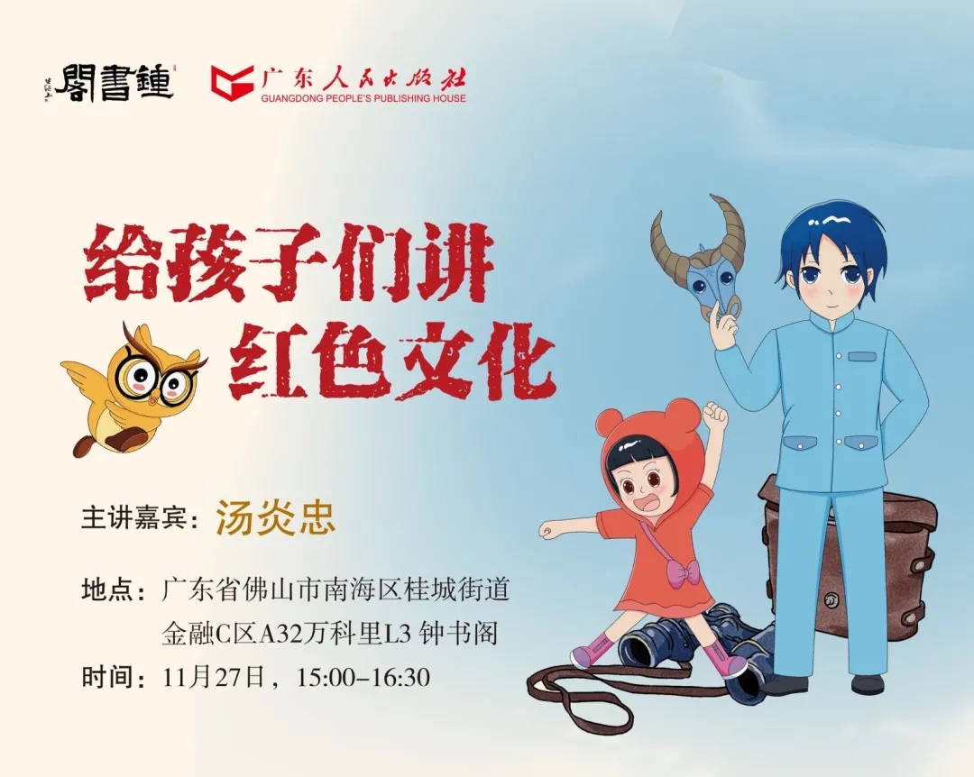 2021年11月27日,為給孩子們講紅色文化,由廣東人民出版社、鐘書閣主辦,廣州市青年作家協會主席、廣東校園文學網總編輯湯炎忠,