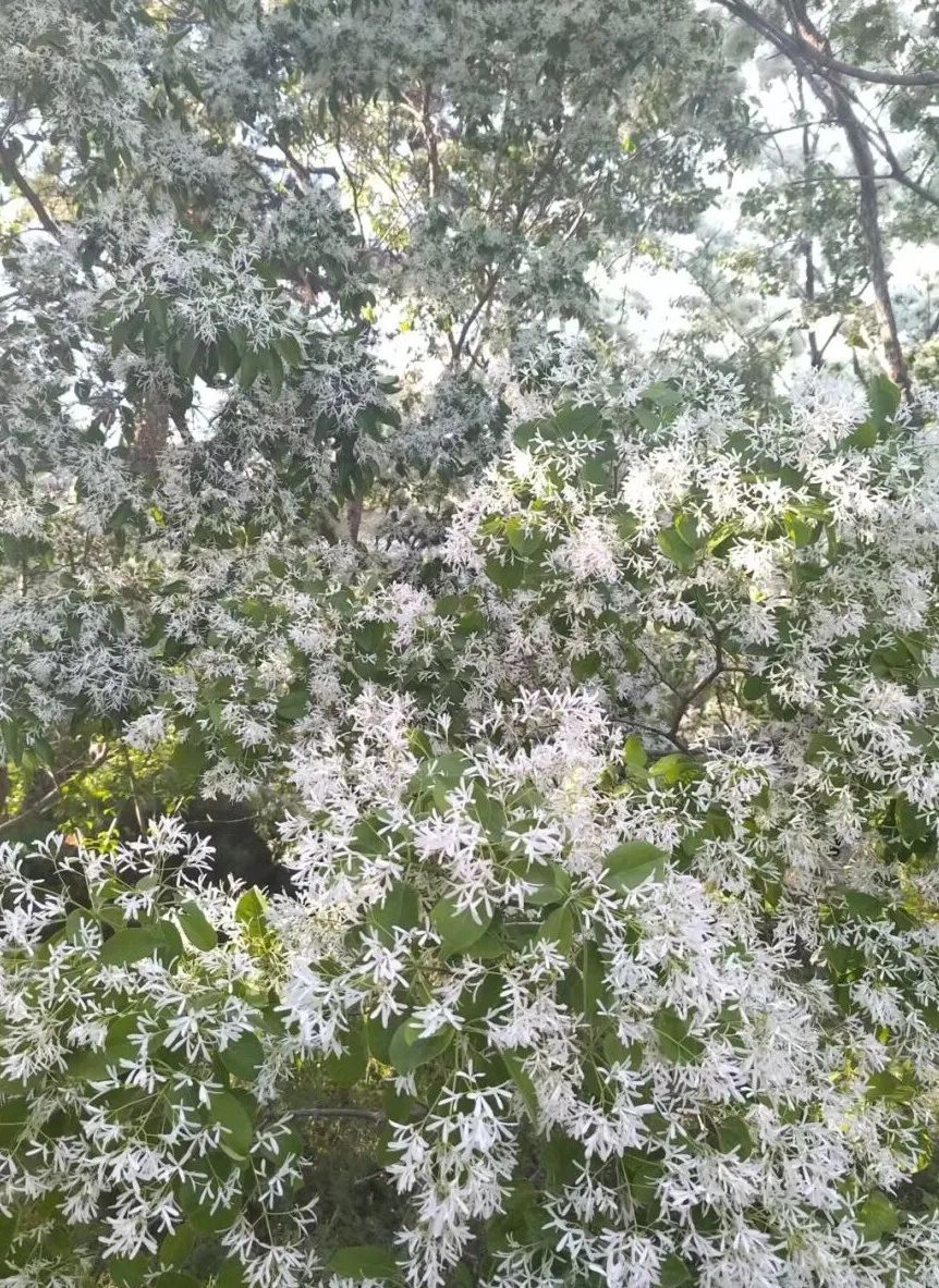 通過李文文老師的介紹得知,北大校本部又稱燕園,包括淑春園、勺園等八大園,校園環(huán)境風(fēng)景如畫,既有皇家園林的宏偉氣度,又有江南山水的秀麗特色。這里不僅有亭臺樓閣等古典建筑,而且山環(huán)水抱,湖泊相連,堤島穿插,風(fēng)景宜人。校園內(nèi)古木參天,綠樹成蔭,四季常青,鳥語花香,園林景色步移景異。美麗的湖光塔影伴隨著大師的背影,這正是燕園中最美的圖畫。初春的北大,單用一個美字,不足以表達(dá)其神韻。那是一種立體的、厚重的、多姿多彩的美……從西門一路走過,校園里沿途樹木蓊郁,俏麗的白皮松,挺拔的毛白楊,還有古樸的槐樹榆樹,無不透露出歷史的滄桑。道路兩旁,分布有多棵流蘇樹,遠(yuǎn)遠(yuǎn)望去,流蘇樹如團團濃云,又如白雪覆蓋,春風(fēng)吹過,花香四溢,真可謂“千年流蘇四月雪,一朝花開萬里香”。