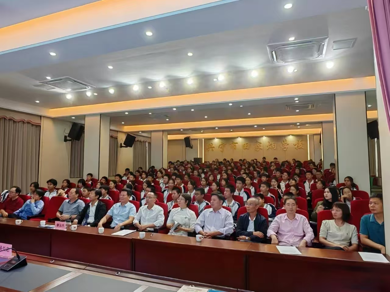 本次活動特邀廣東省報告文學學會副會長、廣州市青年作家協會主席湯炎忠主講,由學校校長劉新軍主持、學校黨委書記廖遠平致歡迎辭,學校七年級部分師生近200人積極參與其中,共同開啟了一場充滿活力與思想碰撞的交流之旅。此外,活動還邀請了梅州市青年美術家協會會長李旺清參與交流。
