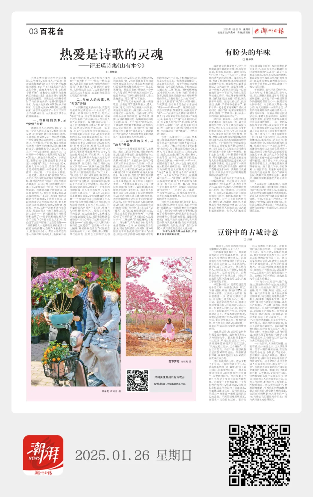 王瑛是華南農業大學中文系教授、文學博士,也是詩人、評論家,其新近出版的詩集《山有木兮》(羊城晚報出版社,2024年4月)是其近年來作品的合集,“山有木兮木有枝,心悅君兮君不知”,詩集命名直接取自先秦佚名的《越人歌》,這是王瑛對詩歌熱愛的高度概況。王瑛在這本詩集中探討了與自我的關系(專輯《敬既往不咎》)、與他人的關系(專輯《敬歲月婉轉》)、與世界的關系(專輯《敬山河壯麗》),并忠實地記錄了一個當代知識分子的精神生活,由此構成王瑛個人的精神譜系。