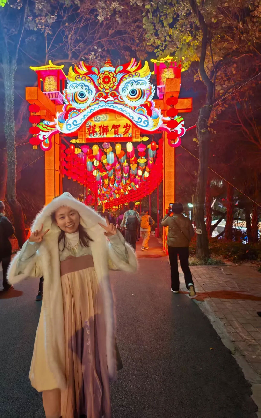 雖是寒冬卻也抵不住似火的熱情和向往,和那對光的追尋,對新年儀式感的期待。我渴望遇見那花,那錦鯉,翹首期盼五彩的光透過那層層紗布呈現(xiàn)出的生動的形象。新年燈會的消息還是自己誤打誤撞才得知的。說來也奇怪,不知道哪來的喜愛,以前從未對這樣的活動感興趣。我欣然赴約,穿上自己喜愛的漢服,來一場美的碰撞。
