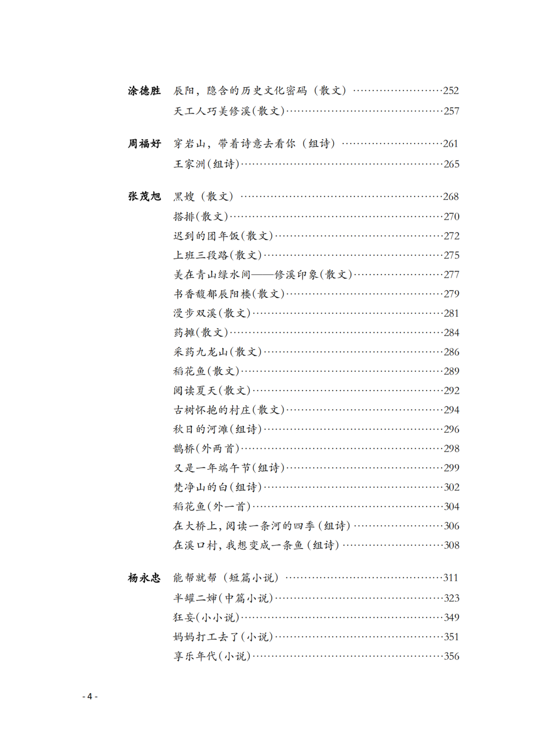 文集《星光》,收集辰溪縣作家協會會員于2016-2020年在全國公開刊物上已經發表的散文、詩歌、短篇小說、小評論等。主要內容包括挖掘、研究當地歷史文化、民俗文化;歌頌辰溪新人新事、好人好事;最近幾年在“精準扶貧,決勝小康”方面,辰溪人們戰勝困難而取得的成績和奉獻精神,及各方面的發展變化。